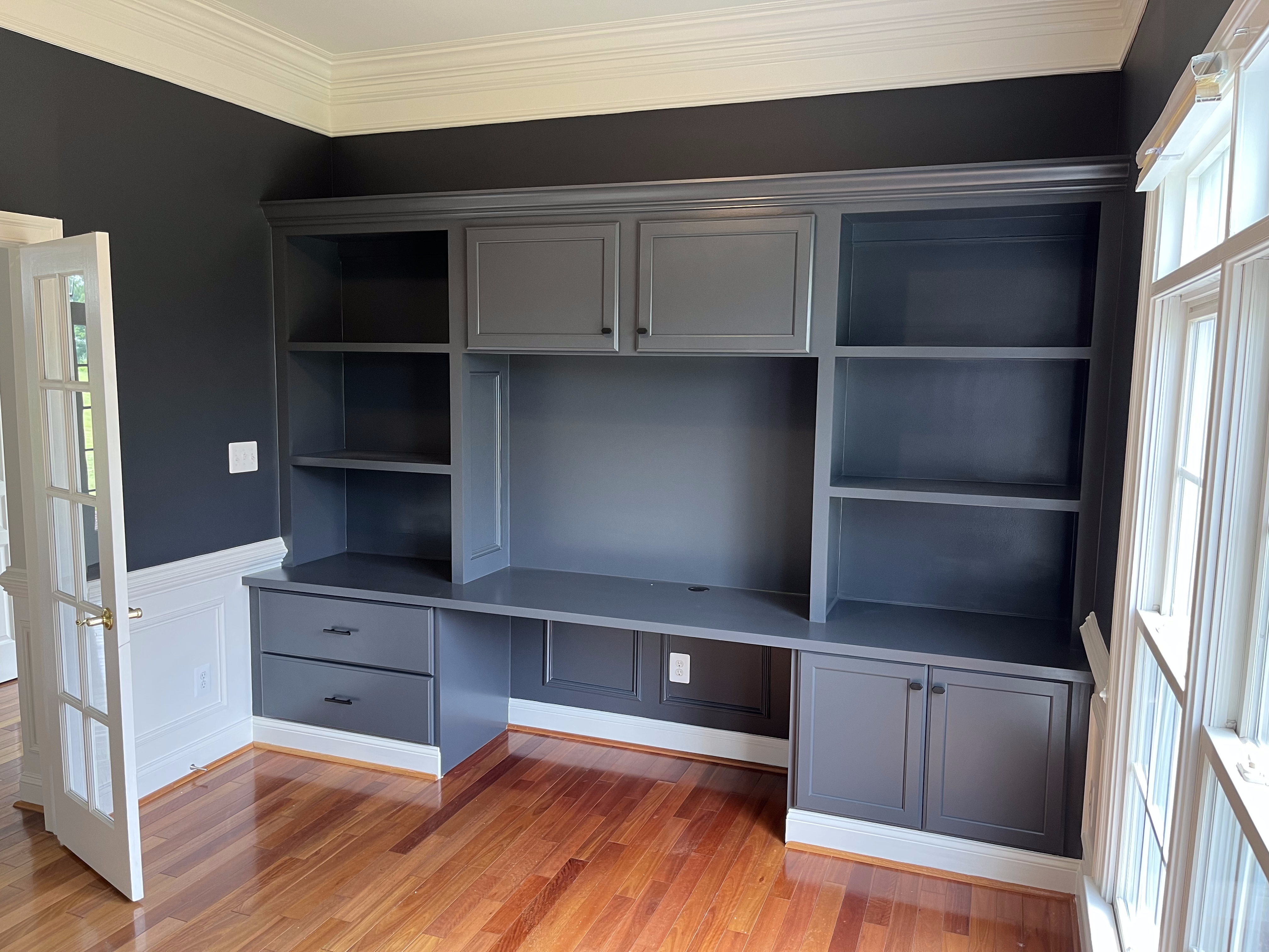 - Built–in bookcases & shelving painting & staining